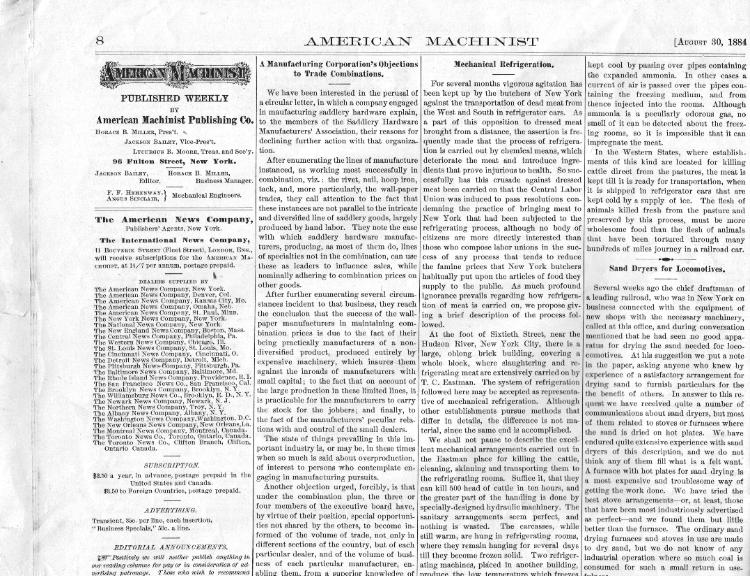 American Machinist August 30 1884, vol. 7 no. 35 pg.8 8