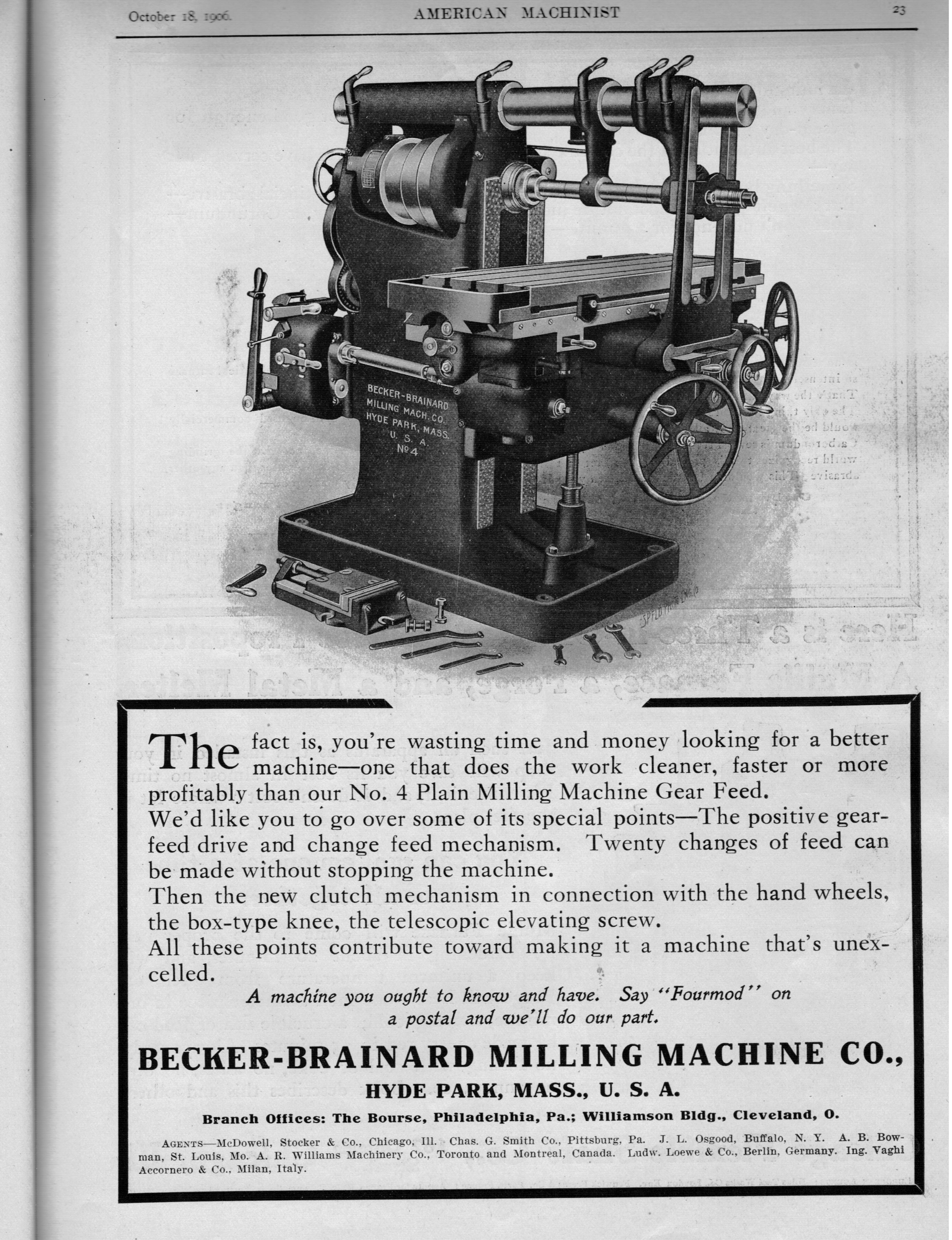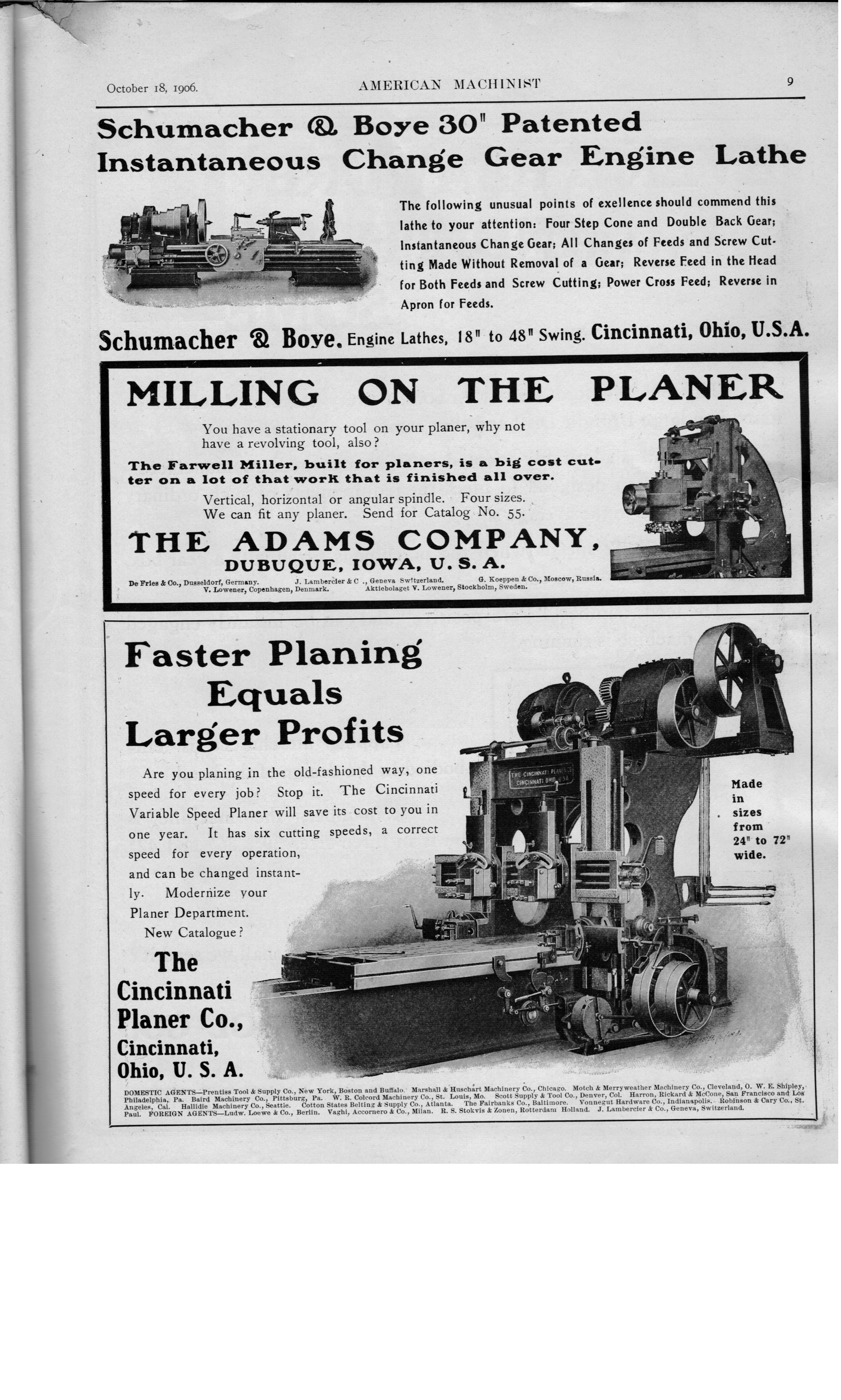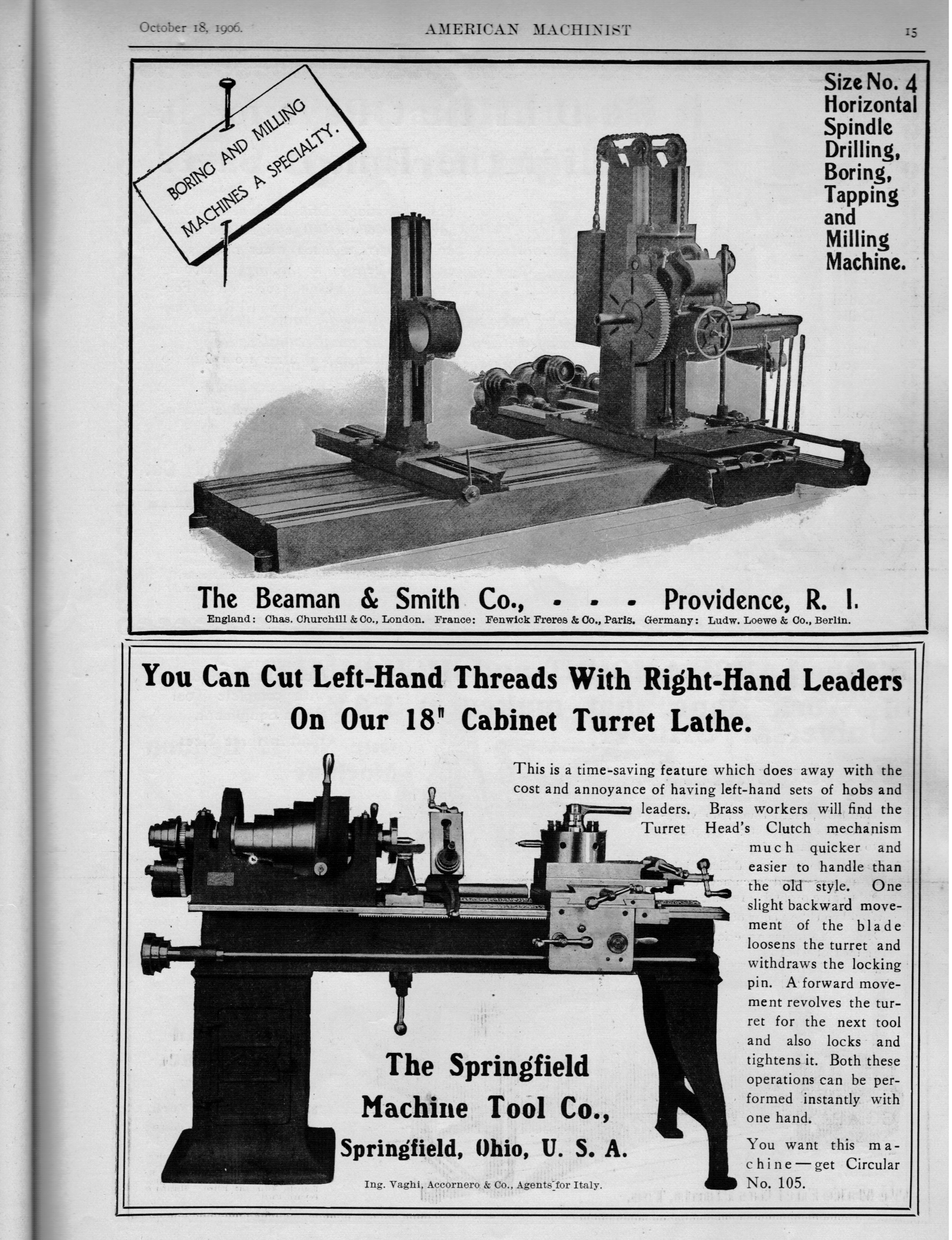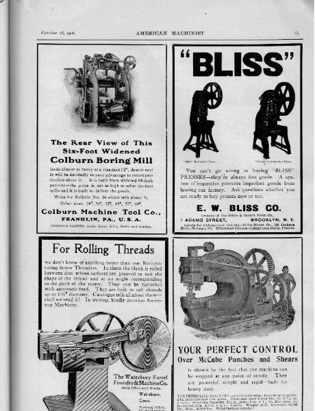 Philadephia, Pa. manufacturer of Cylinder Boring & Facing Machines; Morse Twist Drill and Machine Company of New Bedford, Mass. manufacturer of