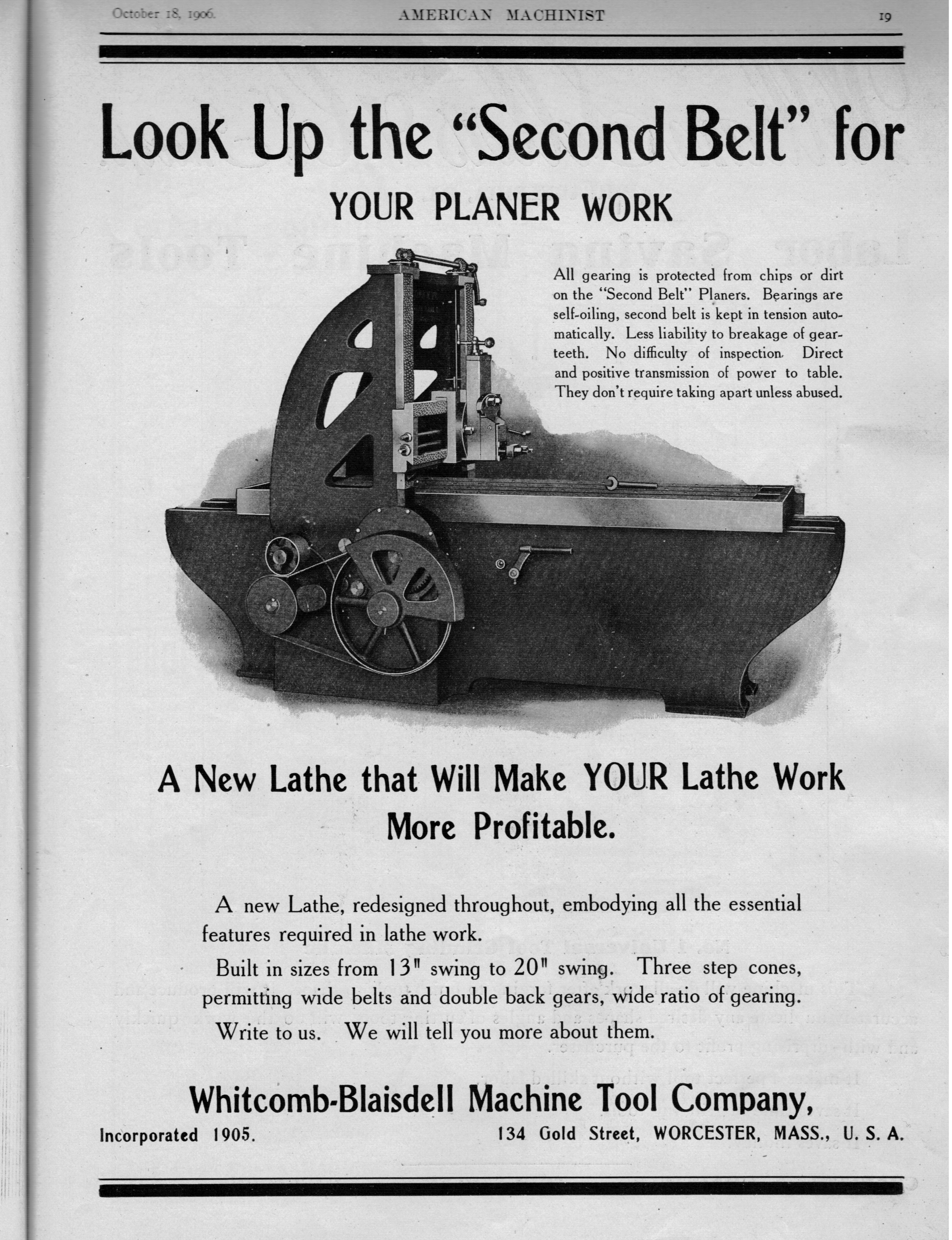Toughkenamon, Pa. manufacturer of Engine Lathes; Boynton & Plummer of Worcestor, Mass. manufacturer of Shaping Machines for Hand & Power;