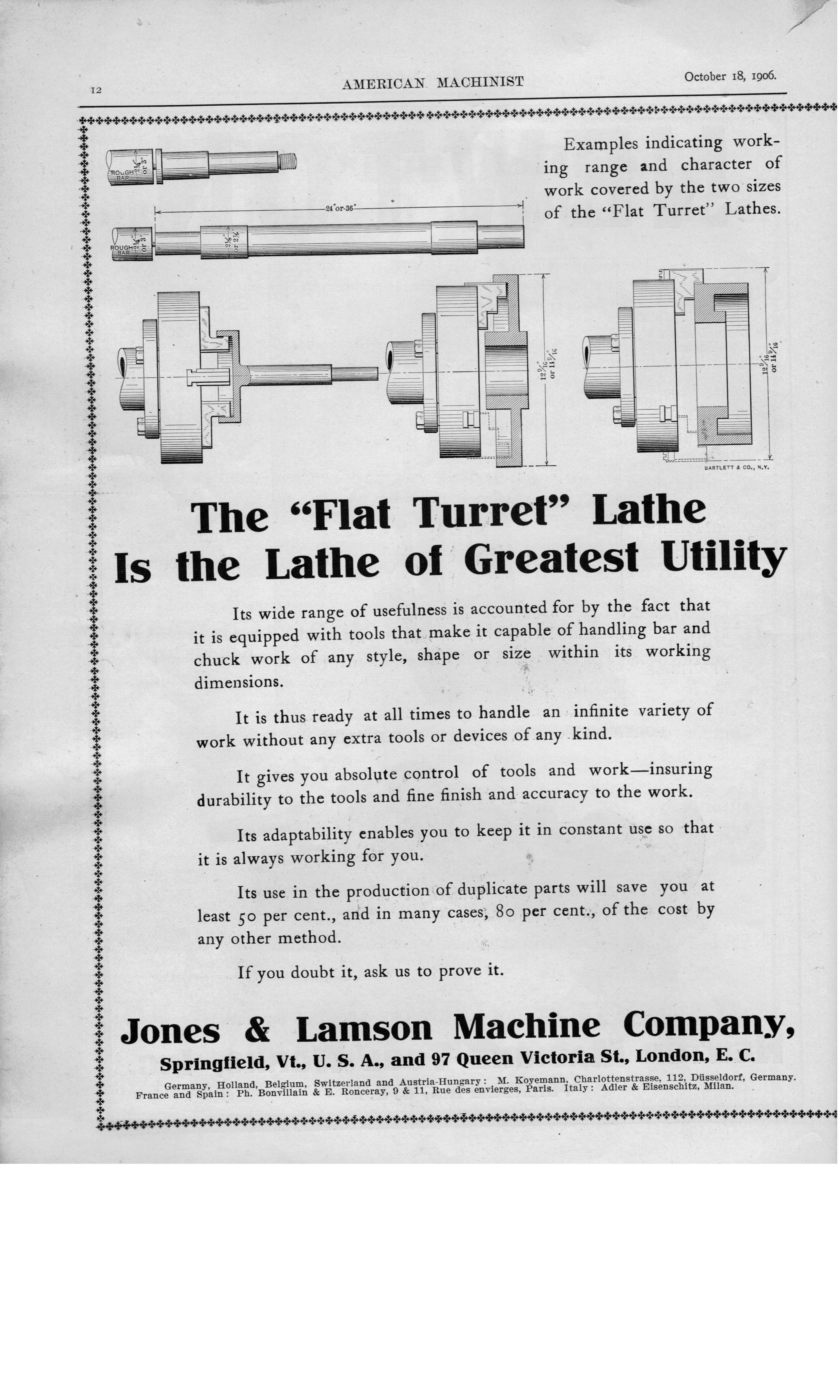 manufacturer of 17" Engine Lathes; H. Bickford of Lake Village, N.H. manufacturer of Boring & Turning Mills; L.S. Starrett of Athol, Mass. manufacturer of