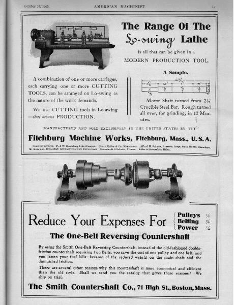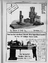 F.E. Reed of Worcestor, Mass. manufacturer of Engine Lathes, Hand Lathes, Foot Lathes, Upright Drills & Milling Machines; S. Ashton Hand Mfg. Co. of