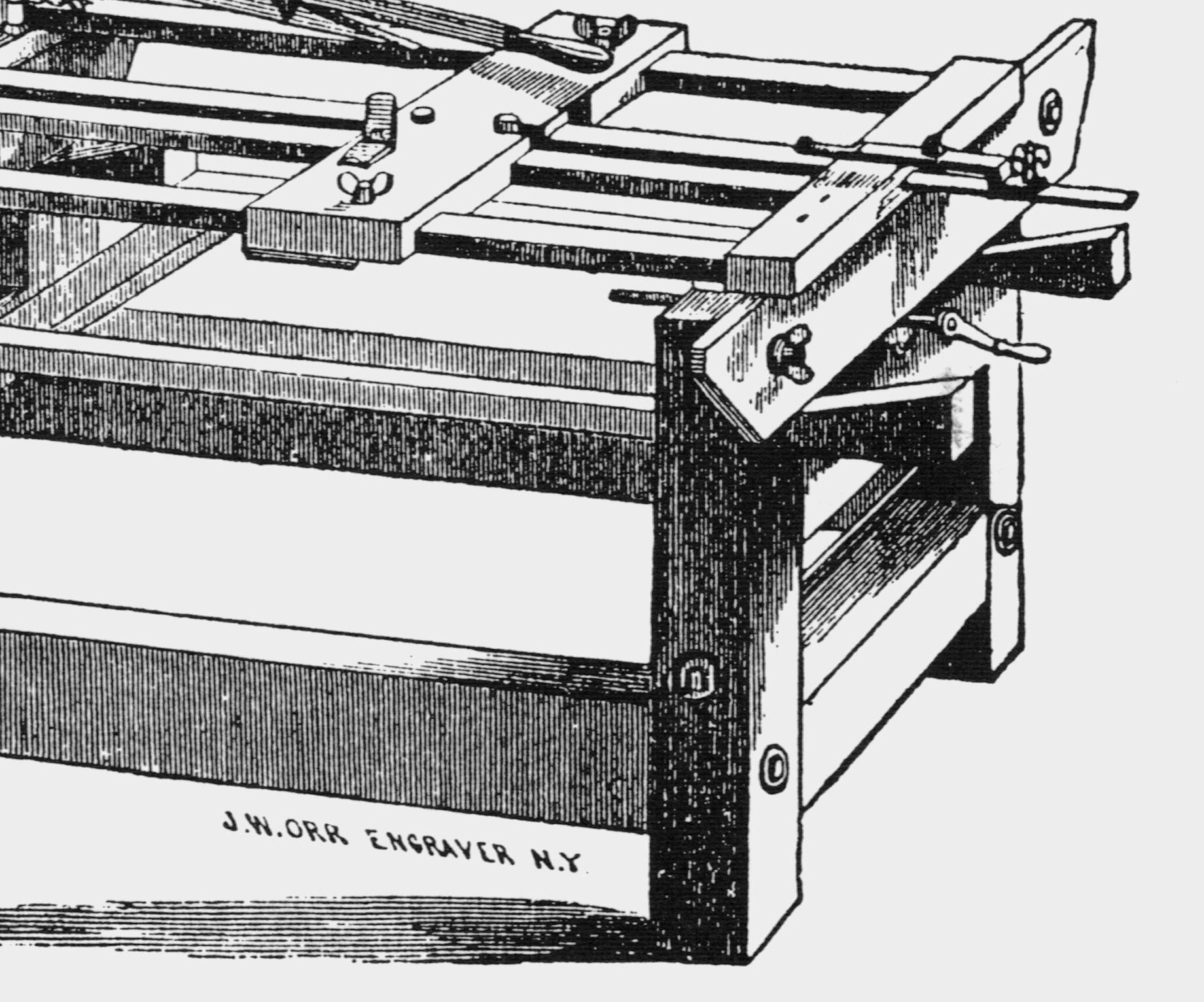 piece to be mortised is placed, and by these rolls is easily moved as the chisel cuts away.