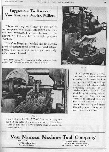 J.D. wright & Sons of Brooklyn, N.Y.; The Cincinnati Milling Machine Co. of Cincinnati, O.; N.P. Bowsher of South Bend, Ind.; J.E. snyder of Worcester,