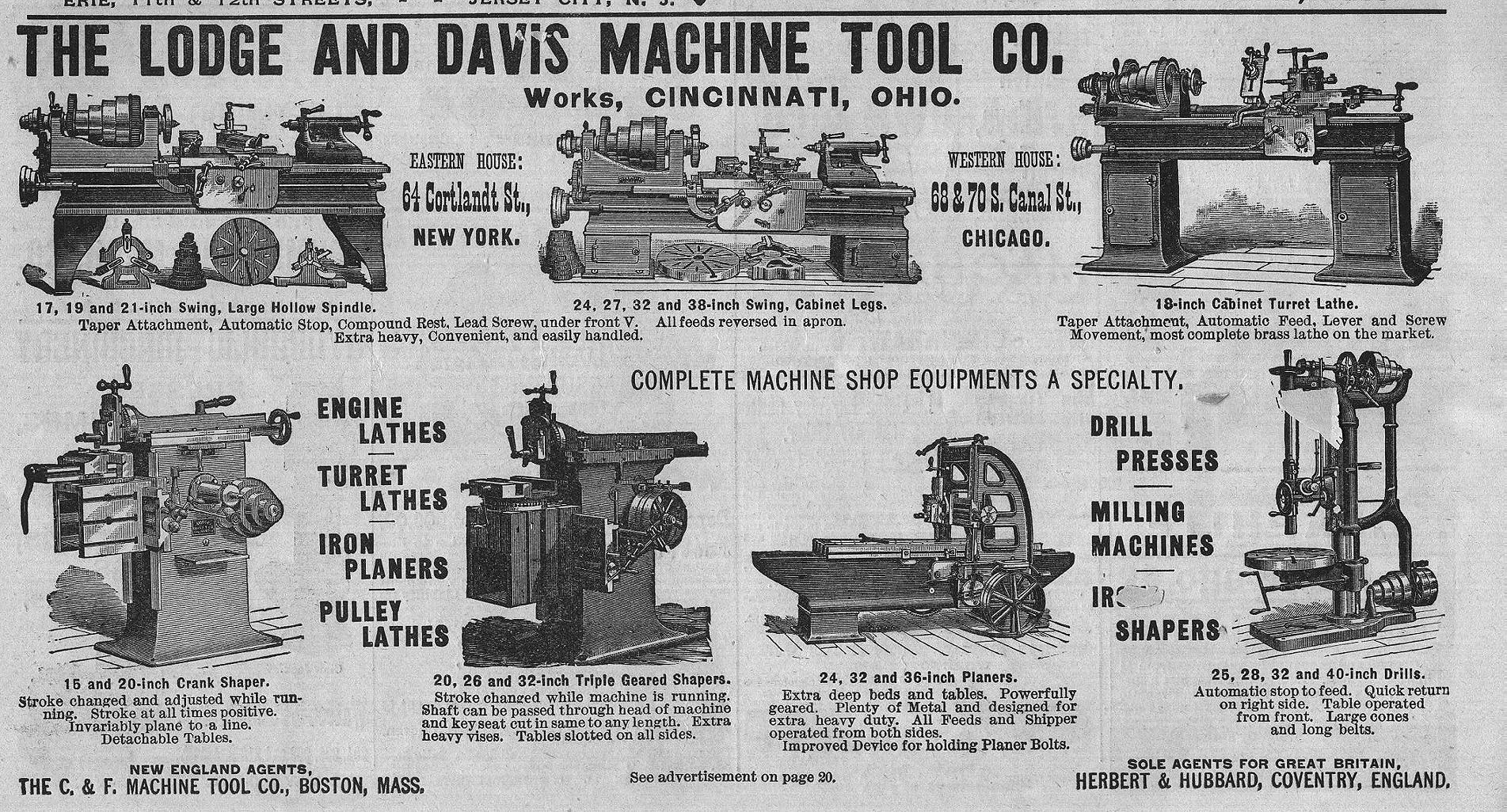 Conn. manufacturer of Iron-Working Machinery; L.W. Pond Machine Co. of Worcestor, Mas. manufacturer of Iron Working Machinery;