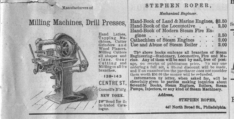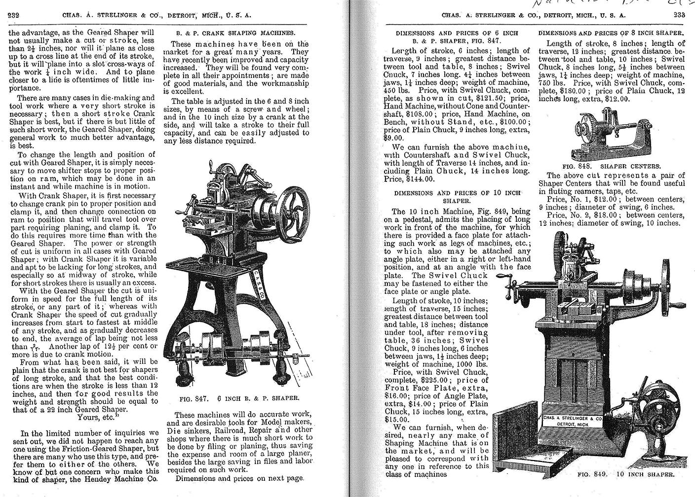 Plummer of Worcestor, Mass. manufacturer of Shaping Machines for Hand & Power; Bickford Drill Co. of Cincinnati, O. manufacturer