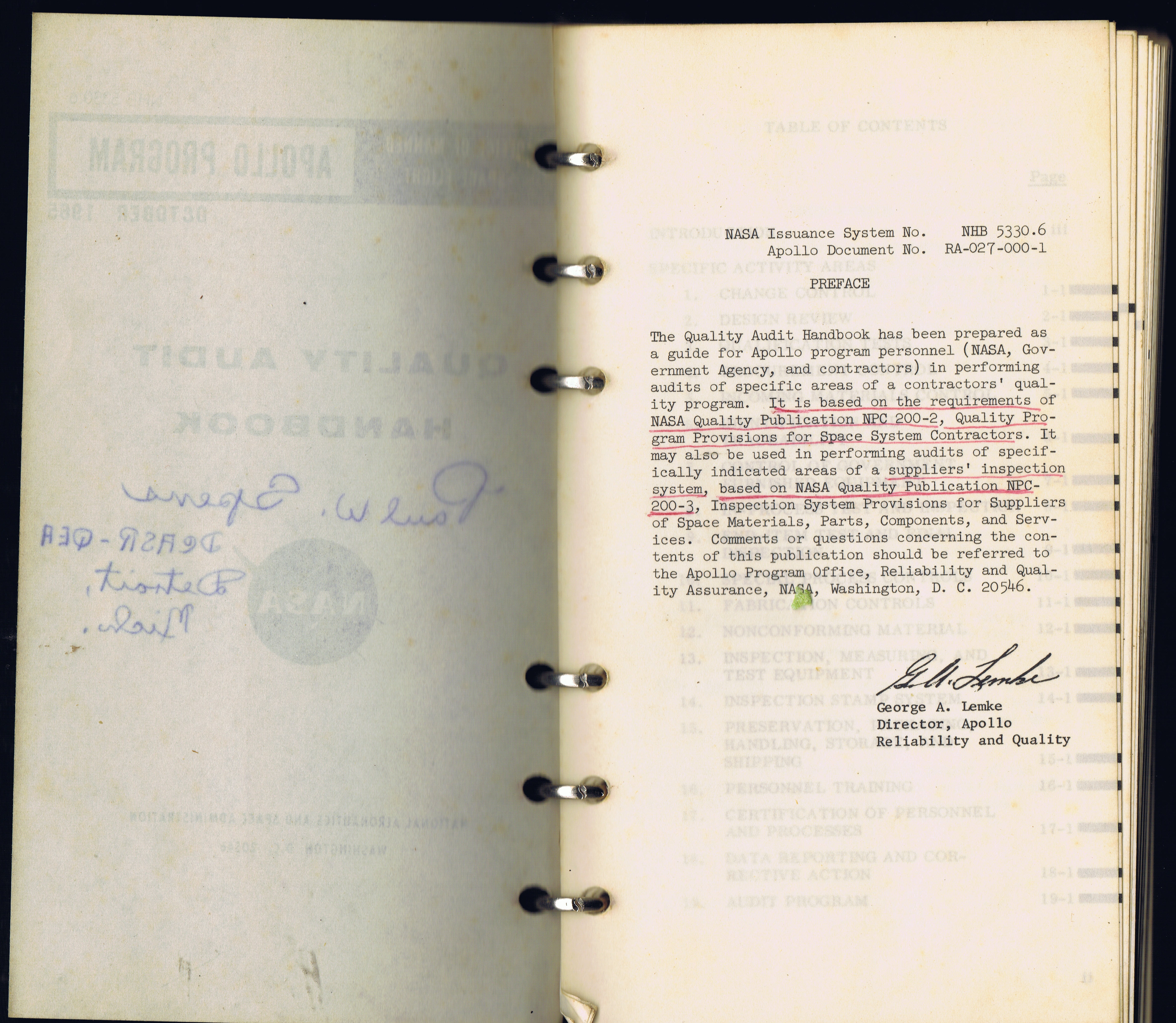 Apollo-ProgranNASA--quality-inspection-program-october-1965-book-Paul_W-Spens-DCASR_QEA-DETROIT-Michigan-used-as-a_guide-and-commente