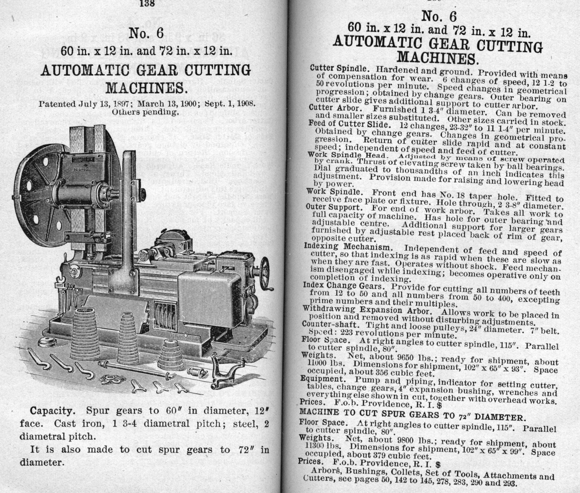 Gear Wheels and Gear Cutting; W.P. Davis of Bloomfield, NY. manufacturer