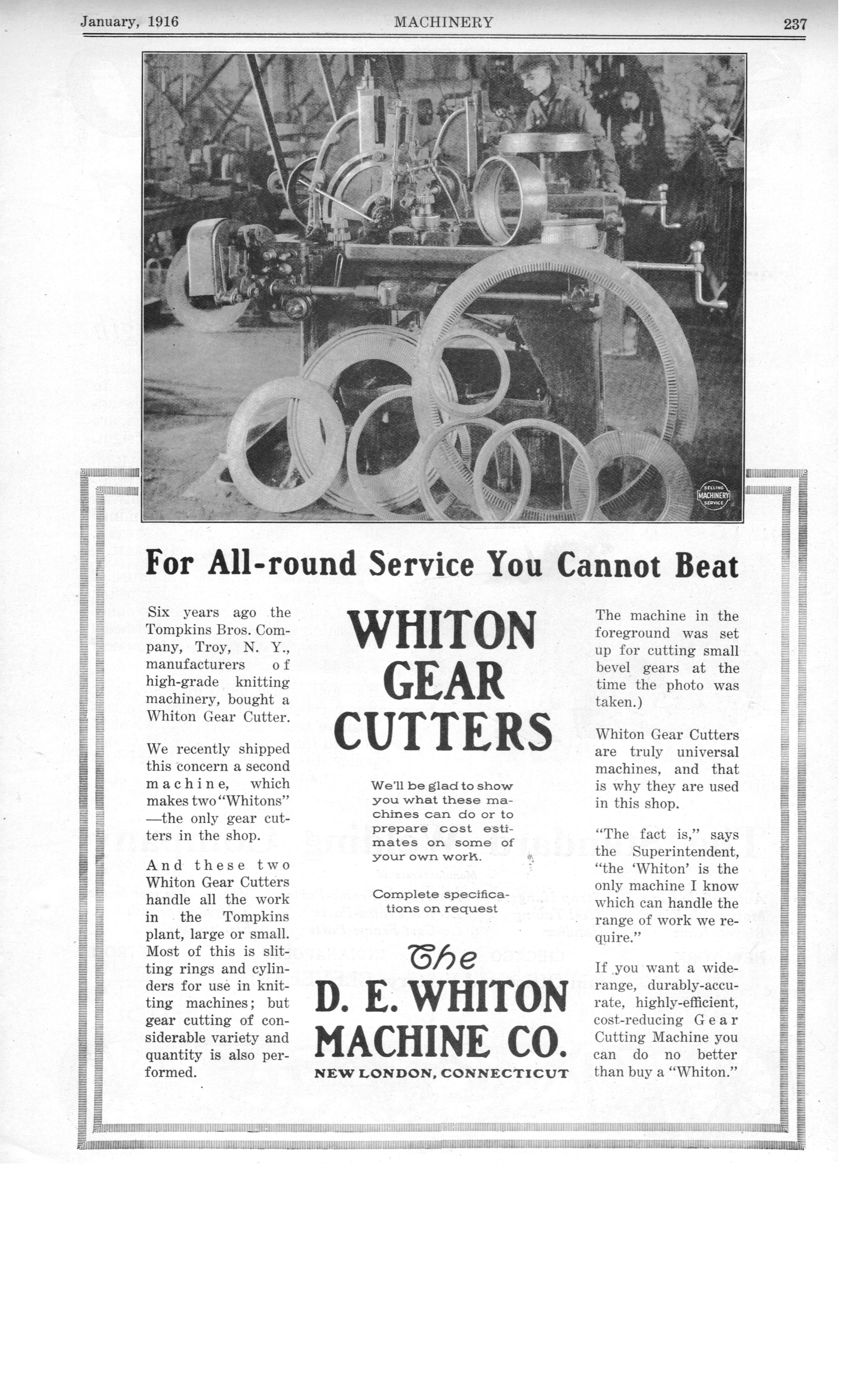 Bloomfield, NY. manufacturer of Key Seating Machines & Drills; The G. A. Gray Co. of Cincinnati, O. manufacturer of 17" & 20" Lathes; Pratt & Letchworth
