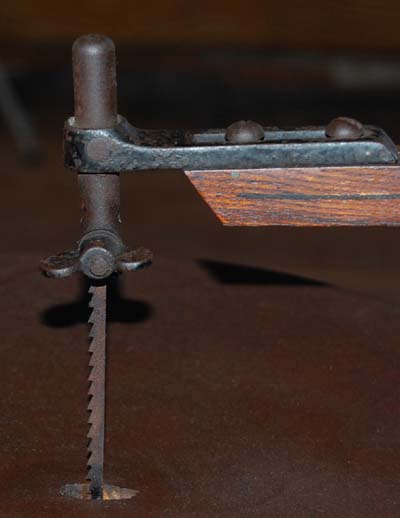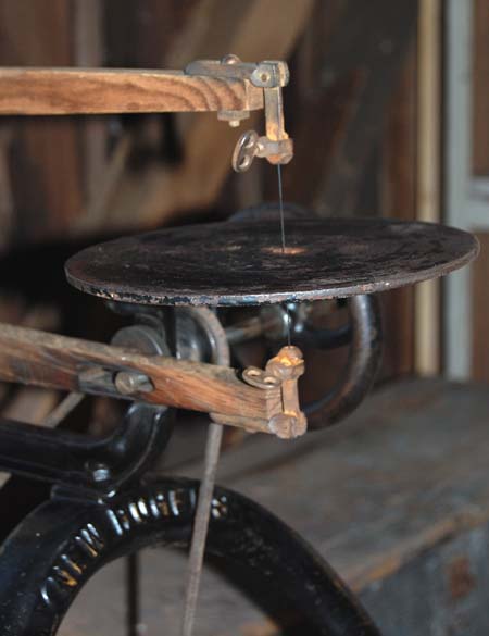 Although lacking its foot pedal, this is the first treadle band saw we have found in 20 years of searching. The evidence that it
