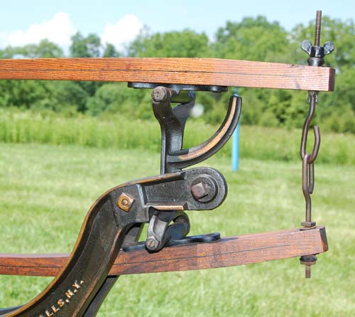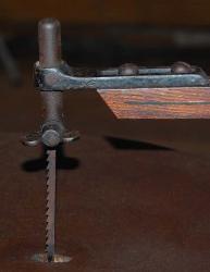 machine is all original, including the hinged blade clamps and jointed stretcher rod, both of