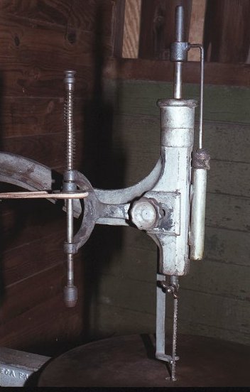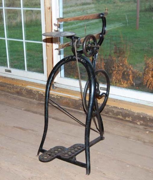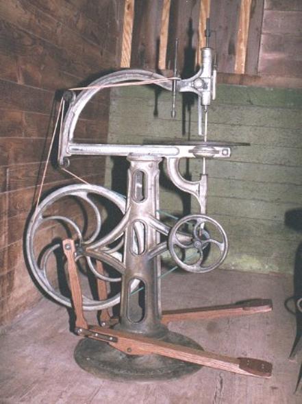 The Seneca Falls "Empire" foot powered saw. Unlike the Victor, with its heavy spring loaded