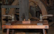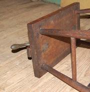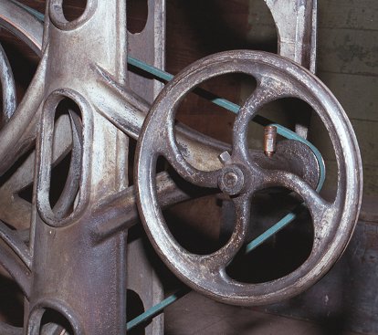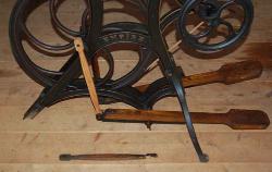 was foot powered consists of the one way clutch pulley, which would have been driven by a treadle and the heavy flywheel on