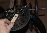 break and old repair, which, I would think, would interfere with a wide blade or with fitting a tire (see photos below). Removing