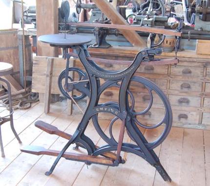 half of the 19th century, some of which were also provided with pulleys for flat belt power as well. This example has the treadle