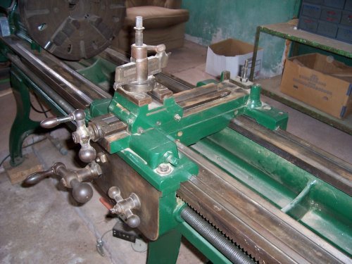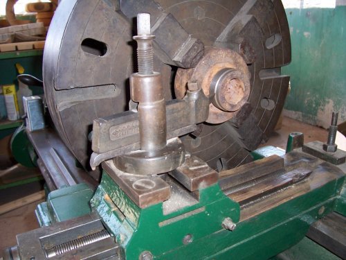 4 head with 2" 7 tpi spindle. 18" 4 jaw chuck and 17" faceplate. Center rest and 13 loose change gears included. The lathe is in good working order.